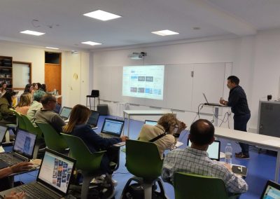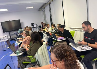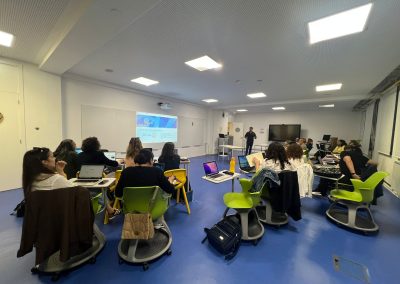 Numa segunda parte, os participantes tiveram oportunidade de experimentar e explorar diversas ferramentas digitais baseadas em Inteligência Artificial, analisando as suas potencialidades e aplicações práticas em contexto educativo. Entre as plataformas apresentadas, destacaram-se o Gamma, o MagicSchool, o Diffit, o Canva com IA, o Heygen, o Invideo e o ChatGPT, que evidenciaram o seu valor no apoio ao trabalho docente, desde a criação de recursos diversos e apresentações até à planificação e avaliação de aprendizagens. A formação incluiu ainda uma reflexão sobre os desafios éticos e críticos associados à adoção da IA em meio escolar, abordando temas como a transparência, fiabilidade, viés algorítmico, proteção de dados e o papel insubstituível do professor num ambiente digital cada vez mais sofisticado.